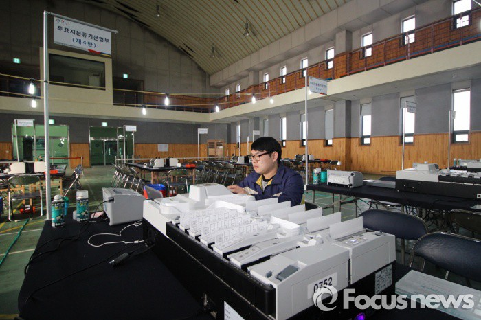 유권자 수는 4210만398명이었다. 지난 19대 총선의 유궈자 수는 4020만5055명이었다.4.13 제20대 총선을 이틀 앞둔 11일 오후 경기도 선거관리위원회 직원들이 수원시 효원고등학교 체육관에 개표소를 설치하고 투표지분류기를 시험작동하고 있다. 2016.04.11 윤광제 기자