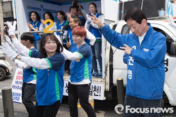 (서울=포커스뉴스) 2016 제20대 국회의원선거를 하루 앞둔 12일 오후 서울 용산구 후암시장 인근에서 진영 서울 용산구 후보가 유권자들에게 지지를 호소하고 있다.
