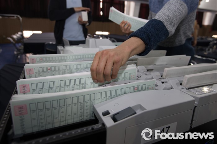 (서울=포커스뉴스) 4.13총선을 하루 앞둔 12일 오후 서울 영등포구 여의도고등학교 체육관에 마련된 개표소에서 선관위 관계자들이 투표지분류기를 점검하고 있다.