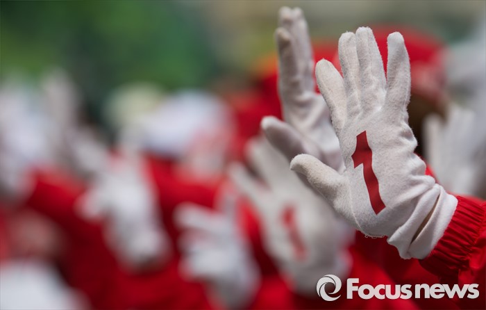 (고양=포커스뉴스) 제20대 국회의원 선거를 하루 앞둔 12일 오후 경기도 고양시 화정역 앞에서 손범규 새누리당 고양갑 후보 선거운동원들이 율동을 선보이고 있다.
