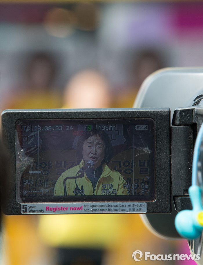 (고양=포커스뉴스) 제20대 국회의원 선거를 하루 앞둔 12일 오후 심상정 정의당 고양갑 후보가 경기 고양시 롯데마트 화정점 앞에서 '국민들께 드리는 글'을 발표하고 있다.