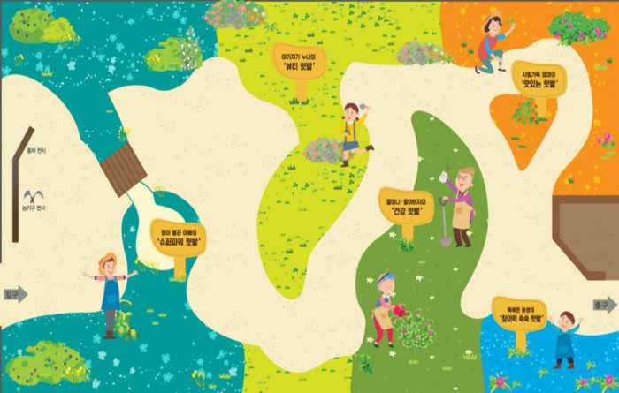 자세한 문의는 서울대공원 조경과(02-500-7560~3)로 하면 된다.15~24일 서울동물원 도시농부텃밭 전시관에서 열릴 텃밭 전시관 내부 안내도. <사진제공=서울시청>