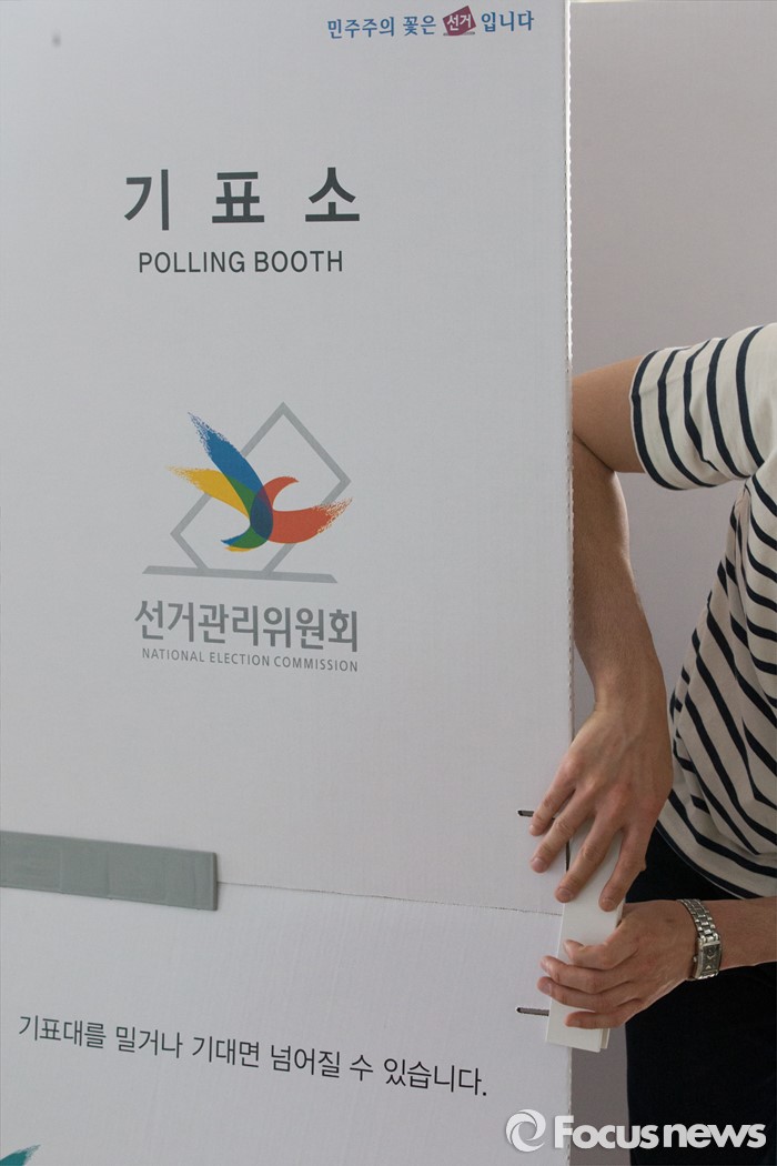 | △ 기표소 설치하는 손길 |