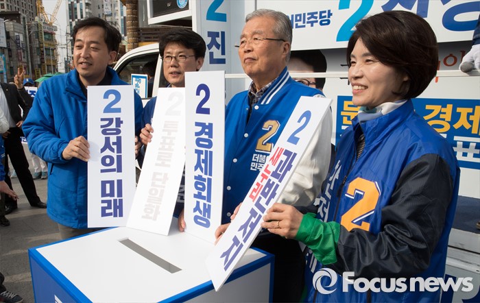 | △ 퍼포먼스 하는 김종인과 더불어민주당 강서구 후보들 |