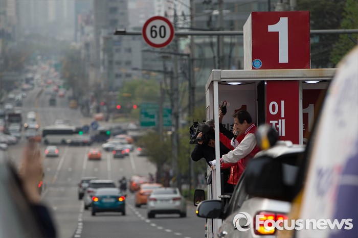 | △ 김무성-안대희 도로위 선거차량 유세 |