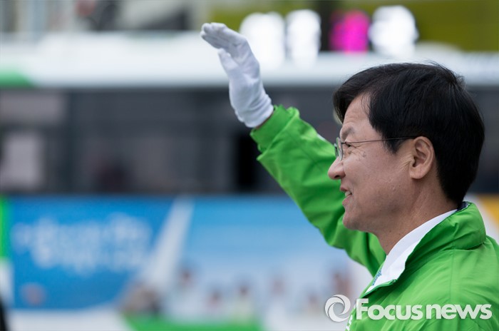 (광주=포커스뉴스) 4.13총선을 하루 앞둔 12일 오후 광주 서구 화정동 염주사거리에서 천정배 국민의당 광주 서구을 후보가 선거유세를 하고 있다.
