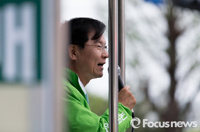 (광주=포커스뉴스) 4.13총선을 하루 앞둔 12일 오후 광주 서구 화정동 염주사거리에서 천정배 국민의당 광주 서구을 후보가 선거유세를 하고 있다.