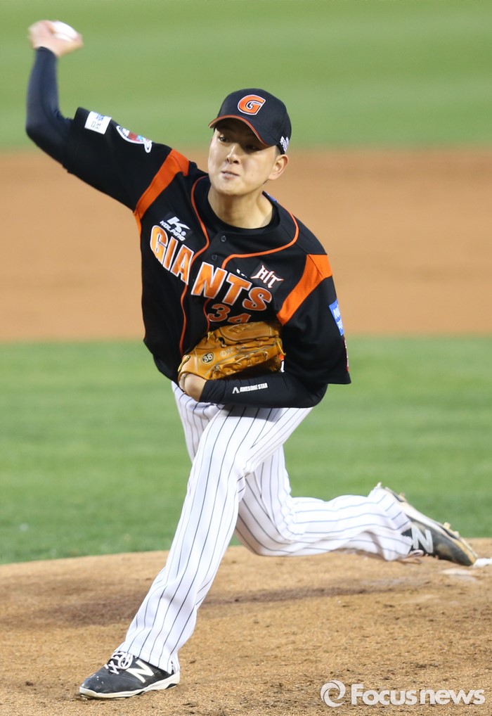 (서울=포커스뉴스) 12일 서울 잠실구장에서 열린 2016 프로야구 롯데-LG 경기에서 1회말 롯데 선발투수 김원중이 투구하고 있다.
