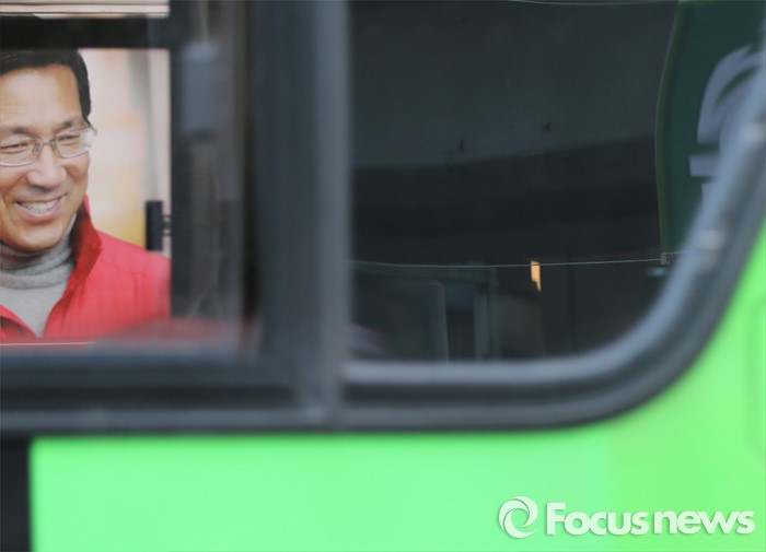 | △ 버스에 비친 박선규 후보 |