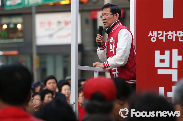 (서울=포커스뉴스) 4.13총선을 하루 앞둔 12일 오후 서울 영등포구 당산역 인근에서 박선규 새누리당 영등포갑 후보가 지지를 호소하고 있다.