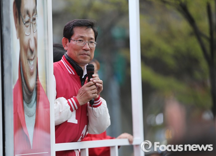 (서울=포커스뉴스) 4.13총선을 하루 앞둔 12일 오후 서울 영등포구 당산역 인근에서 박선규 새누리당 영등포갑 후보가 지지를 호소하고 있다.