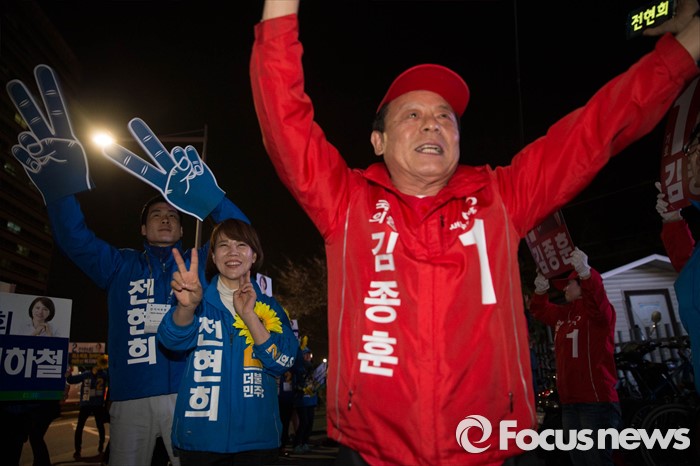| △ 수서역 앞에서 김종훈-전현희 '유세 전쟁' |