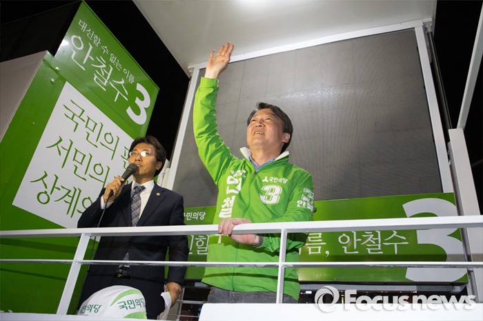 (서울=포커스뉴스) 4.13총선을 하루 앞둔 12일 오후 서울 노원구 롯데백화점 정문 앞에서 안철수 국민의당 상임공동대표가 막바지 선거 유세를 하고 있다.