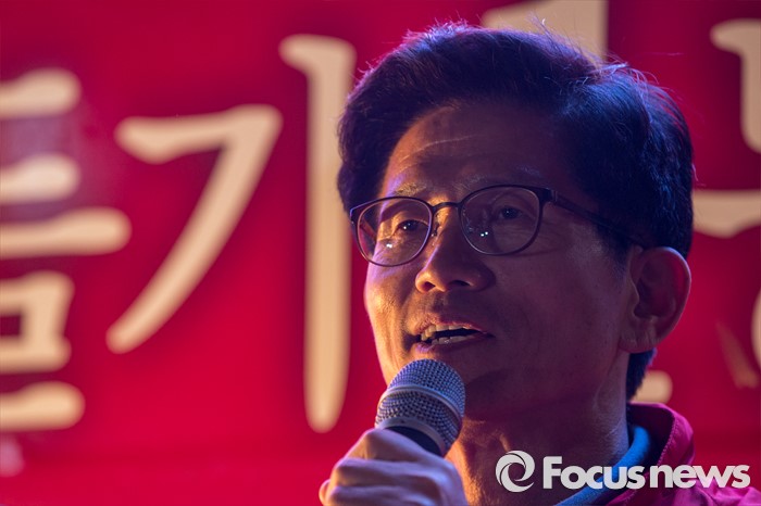 (대구=포커스뉴스) 김문수 새누리당 대구 수성구갑 후보가 12일 오후 대구광역시 수성구 신매광장에서 유세를하며 유권자들에게 한 표를 호소 하고 있다.
