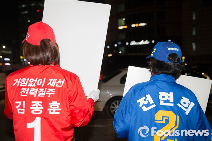 | △ 수서역 앞 '마지막 유세 전쟁' |