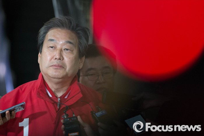 (서울=포커스뉴스) 20대 총선을 하루 앞둔 12일 오후 서울 용산구 서울역 KTX 플랫폼에서 김무성 새누리당 대표가 부산으로 가기 전 기자들의 질문을 받고 있다.