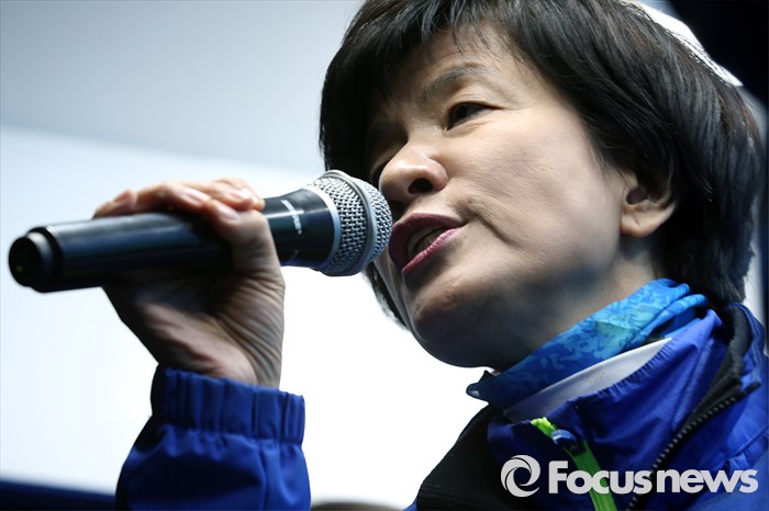 (서울=포커스뉴스) 4.13총선을 하루 앞둔 12일 오후 서울 영등포구 영등포역 인근에서 김영주 더불어민주당 영등포갑 후보가 지지를 호소하고 있다.