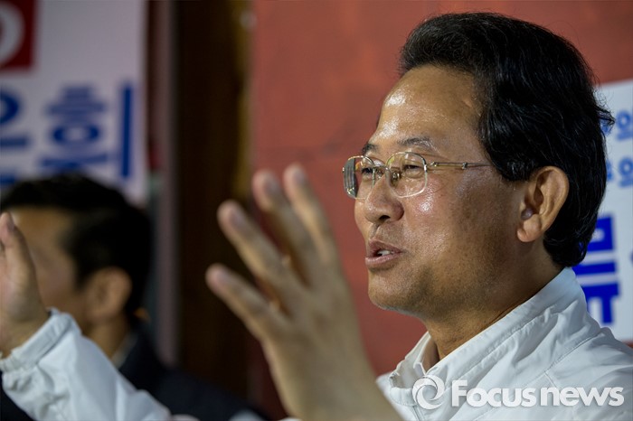 (대구=포커스뉴스) 류성걸 무소속 대구 동구갑 후보가 12일 오후 대구광역시 동구 평화시장 닭똥집골목에서 마무리 합동유세를하며 지지자들에게 감사 인사를 전하고 있다.
