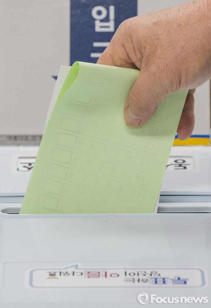 (부산=포커스뉴스) 제20대 국회의원선거일인 13일 오전 부산 영도구 동삼1동 제6투표소에서 유권자들이 투표하고 있다.
