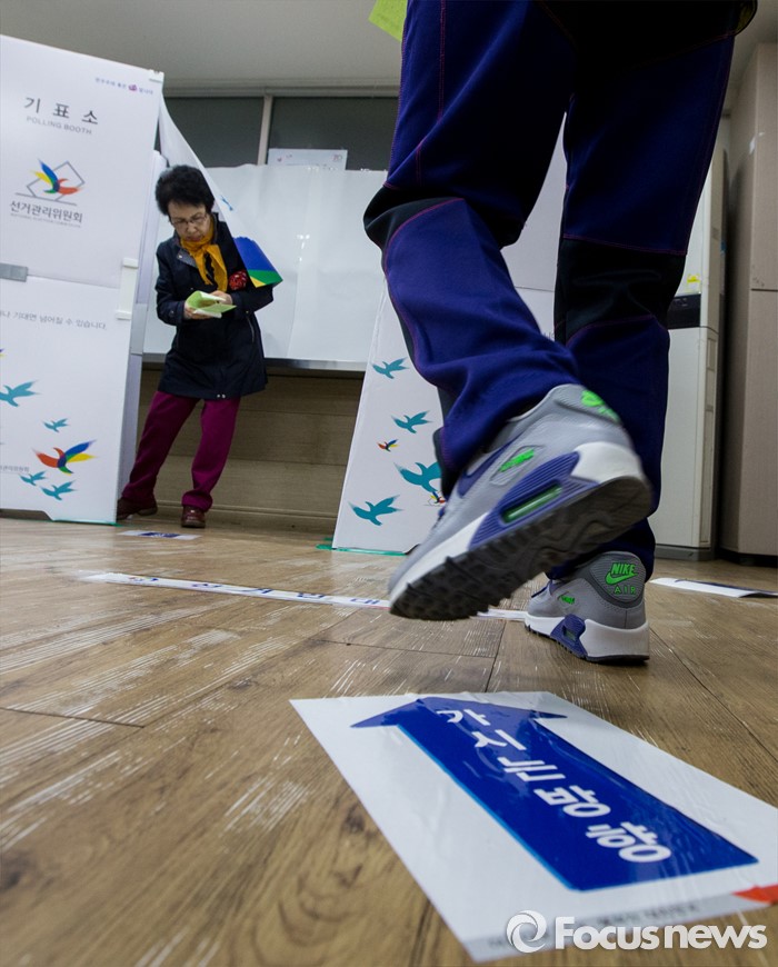 (부산=포커스뉴스) 제20대 국회의원선거일인 13일 오전 부산 영도구 동삼1동 제6투표소에서 유권자들이 투표하고 있다.