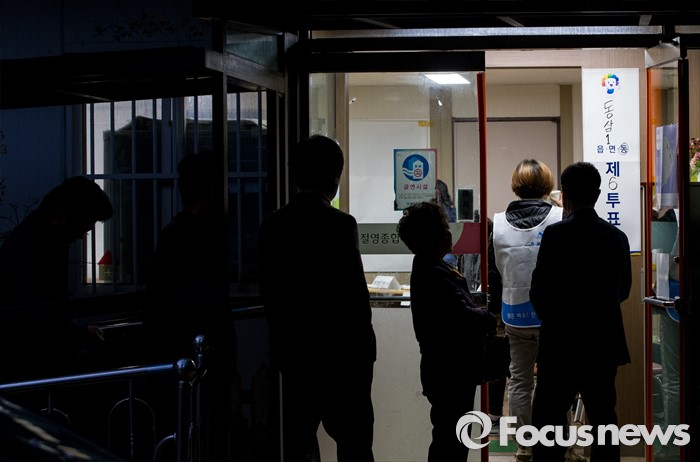 (부산=포커스뉴스) 제20대 국회의원선거일인 13일 오전 부산 영도구 동삼1동 제6투표소에서 유권자들이 투표 시작을 기다리고 있다.