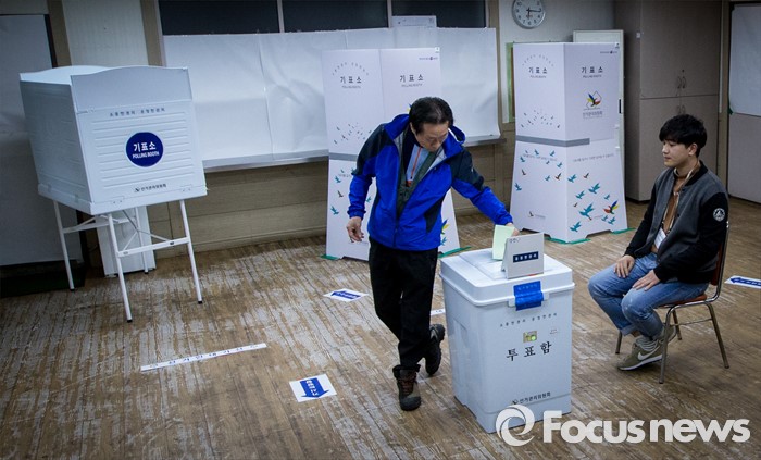 (부산=포커스뉴스) 제20대 국회의원선거일인 13일 오전 부산 영도구 동삼1동 제6투표소에서 유권자들이 투표하고 있다.