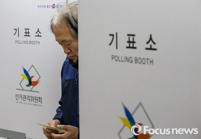 (부산=포커스뉴스) 제20대 국회의원선거일인 13일 오전 부산 영도구 동삼1동 제6투표소에서 유권자들이 투표하고 있다.