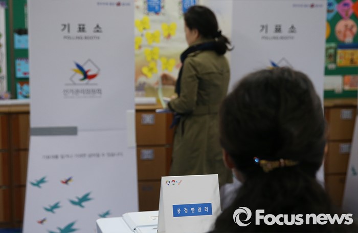 (서울=포커스뉴스) 제20대 국회의원 선거가 시작된 13일 오전서울 용산구 한남초등학교에 마련된 한남 제3투표소에서 유권자들이 투표를 하고 있다.