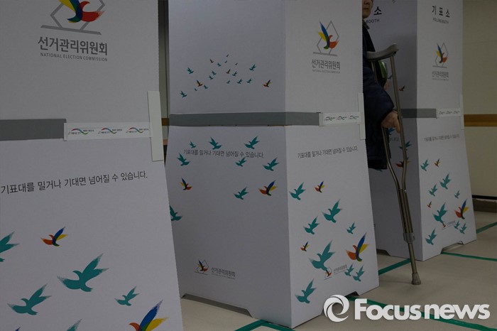 (서울=포커스뉴스) 제20대 국회의원선거일인 13일 오전 서울 성북구의 한 투표소에서 유권자들이 투표를 하고 있다.