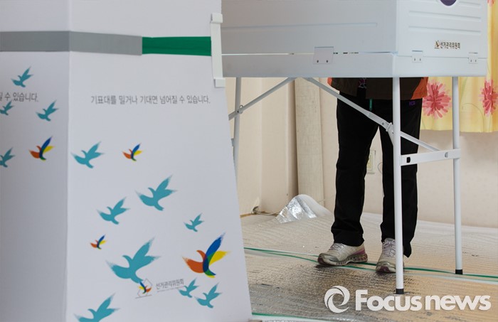 (광주=포커스뉴스) 제20대 국회의원 선거일인 13일 오전 광주 광산구 첨단라인1차아파트 경로당에서 유권자들이 소중한 한 표를 행사하고 있다.