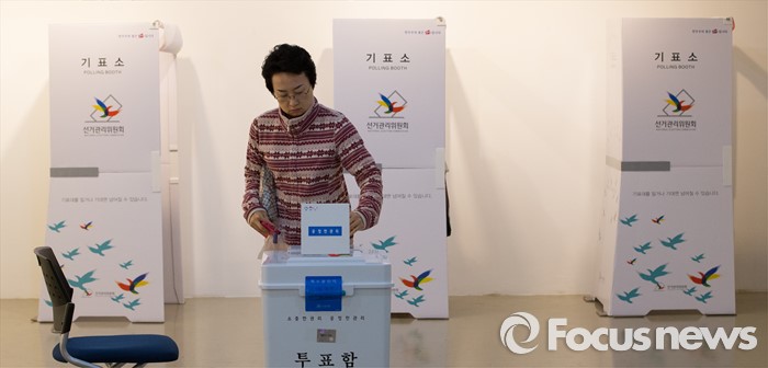 (서울=포커스뉴스) 2016 제20대 국회의원선거날인 13일 오전 서울 종로구 동성고등학교 백주년기념관에 설치된 투표소에서 유권자들이 투표를 하고 있다.