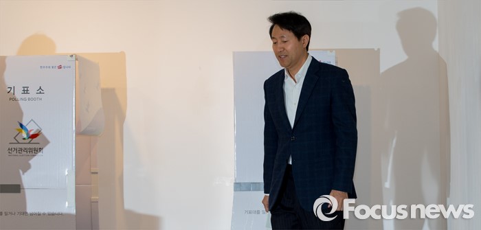 (서울=포커스뉴스) 2016 제20대 국회의원선거날인 13일 오전 서울 종로구 동성고등학교 백주년기념관에 설치된 투표소에서 오세훈 새누리당 종로 후보가 기표를 마치고 투표함으로 향하고 있다.