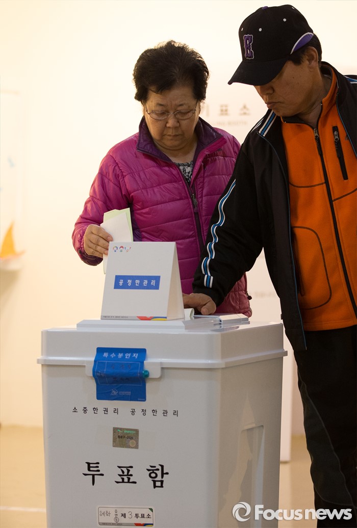 (서울=포커스뉴스) 2016 제20대 국회의원선거날인 13일 오전 서울 종로구 동성고등학교 백주년기념관에 설치된 투표소에서 유권자들이 투표를 하고 있다.