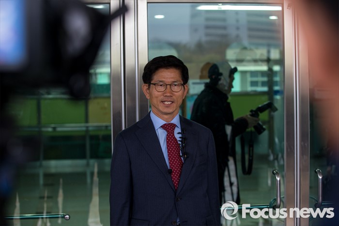 (대구=포커스뉴스) 제20대 국회의원선거날인 13일 오전 대구 수성구 청림초등학교에 마련된 투표소에서 김문수 새누리당 대구 수성구갑 후보가 투표를 마친 뒤 취재진과 인터뷰 하고 있다.