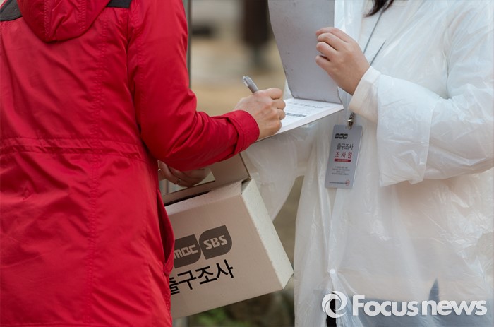 (광주=포커스뉴스) 제20대 국회의원 선거일인 13일 오전 광주 광산구 산월동 봉산초등학교에서 출구조사 방송관계자들이 출구조사를 하고 있다.
