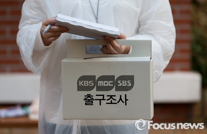 (광주=포커스뉴스) 제20대 국회의원 선거일인 13일 오전 광주 광산구 산월동 봉산초등학교에서 출구조사 방송관계자들이 출구조사를 하고 있다.