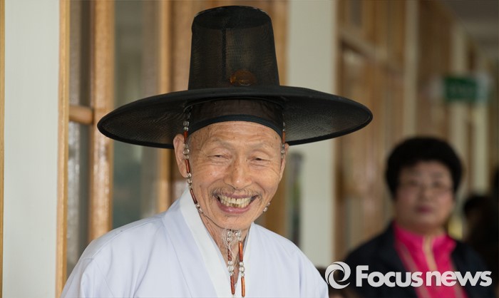 (논산=포커스뉴스) 제20대 국회의원 선거가 시작된 13일 오전 충남 논산 연산면 제1투표소에서 양지서당 유복엽 큰 훈장이 투표를 마치고 밝은 미소를 보이고 있다.