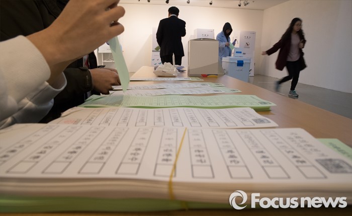 (서울=포커스뉴스) 2016 제20대 국회의원선거날인 13일 오전 서울 종로구 동성고등학교 백주년기념관에 설치된 투표소에서 유권자들이 투표를 하고 있다.