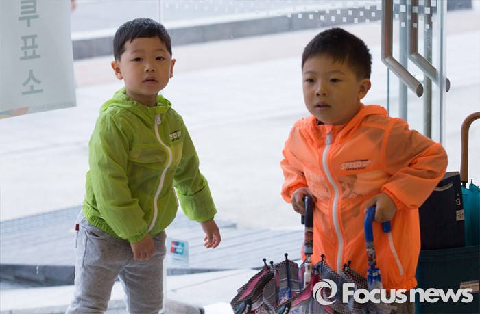 (서울=포커스뉴스) 제20대 국회의원선거일인 13일 오전 서울 광진구 능동 제3투표소에서 아이들이 투표하는 부모님을 기다리고 있다.