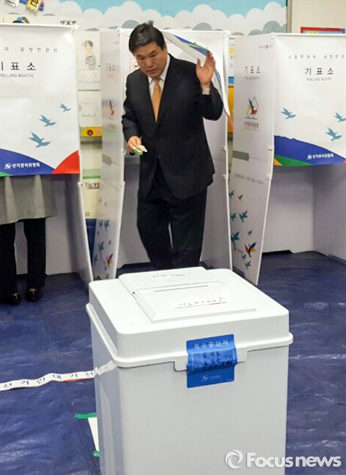 (대구=포커스뉴스) 제20대 국회의원선거날인 13일 오전 대구 북구 운암초등학교에 마련된 투표소에서 홍의락 무소속 대구 북구을 후보가 투표를 하고 있다.