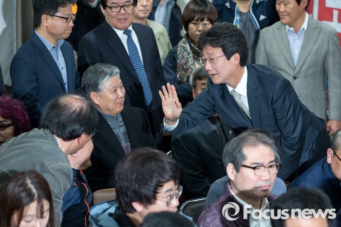 (대구=포커스뉴스) 제20대 국회의원선거 출구조사를 통해 유승민 무소속 대구 동구을 후보가 당선이 예측된 13일 오후 대구 동구 유 후보 선거사무소에서 유승민 후보가 지지자들의 축하를 받고 있다.