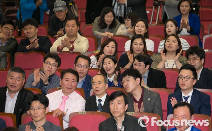 | △ 기뻐하는 더민주 당직자 및 관계자들 |