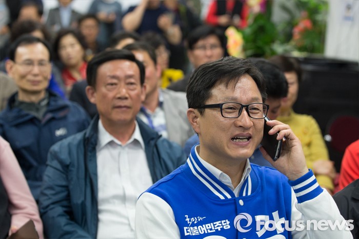 (서울=포커스뉴스) 13일 오후 서울 은평구 강병원 더불어민주당 은평구을 후보의 사무실에서 강후보가 지지자들과 함께 개표방송을 보고 있다.