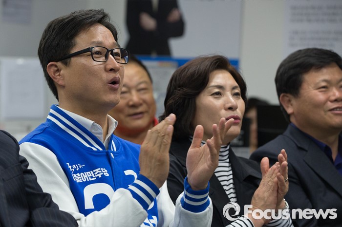 (서울=포커스뉴스) 13일 오후 서울 은평구 강병원 더불어민주당 은평구을 후보의 사무실에서 강후보가 지지자들과 함께 개표방송을 보고 있다.