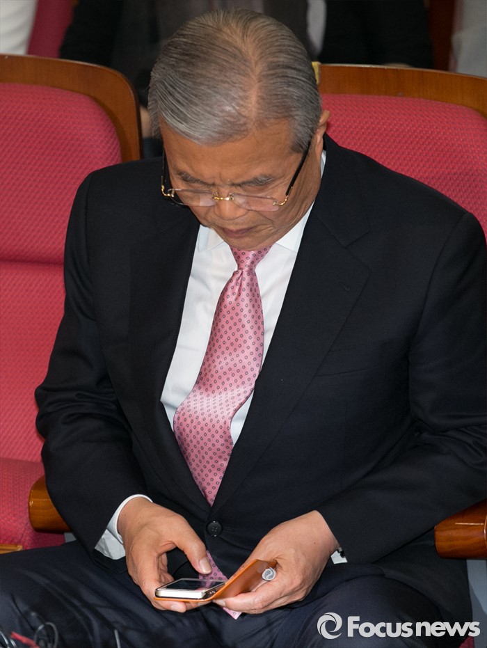 (서울=포커스뉴스) 20대 총선 투표일인 13일 오후 서울 여의도 국회 의원회관 대회의실에 마련된 더불어민주당 개표상황실에서 김종인 비대위 대표 겸 선대위원장이 핸드폰을 살펴보고 있다.