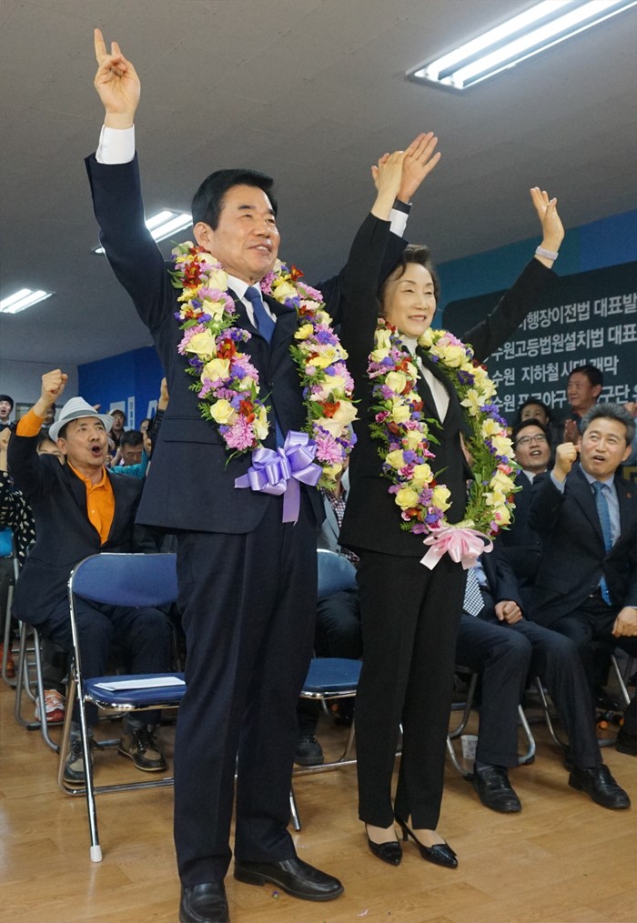 | △ 기뻐하는 더민주 김진표 |
