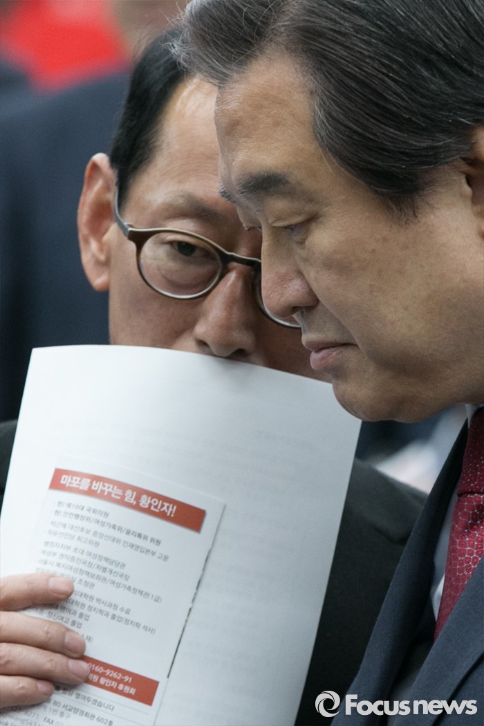 2위는 38.3%의 득표율로 더불어민주당 정진우 후보가 차지했다.(서울=포커스뉴스) 김무성(오른쪽) 새누리당 대표와 김도읍 의원이 8일 오후 서울 여의도 국회에서 열린 의원총회에 참석해 논의 하고 있다. 2016.01.08 박철중 기자