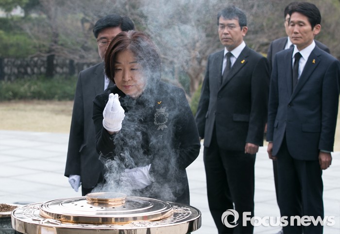 (서울=포커스뉴스) 심상정 정의당 상임대표와 20대 총선 비례대표 당선인들이 14일 오전 동작구 국립서울현충원에서 현충탑 참배를 하고 있다.