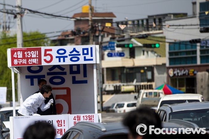 | △ 대구 동구 주민들에게 허리숙여 인사하는 유승민 당선자 |