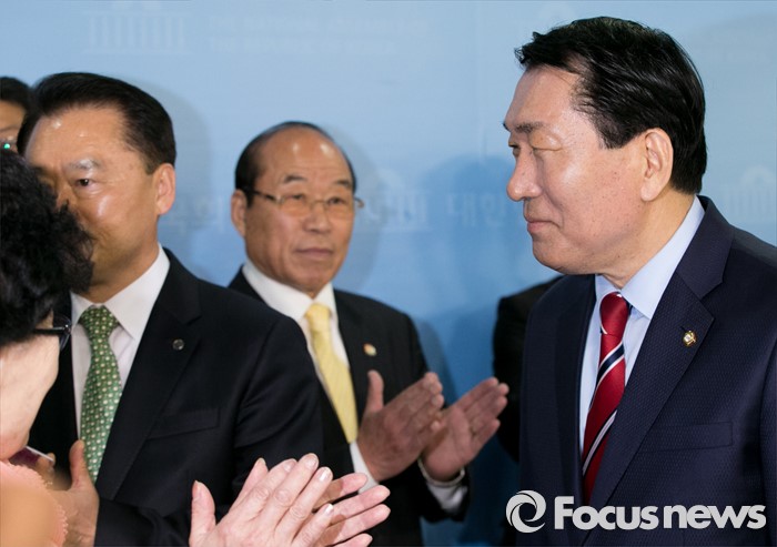 (서울=포커스뉴스) 20대 총선에서 인천 중구·동구·강화군·옹진군 지역구에서 당선된 안상수 무소속 당선인이 14일 오전 서울 여의도 국회 정론관에서 새누리당 복당 선언 기자회견을 위해 입장하고 있다.